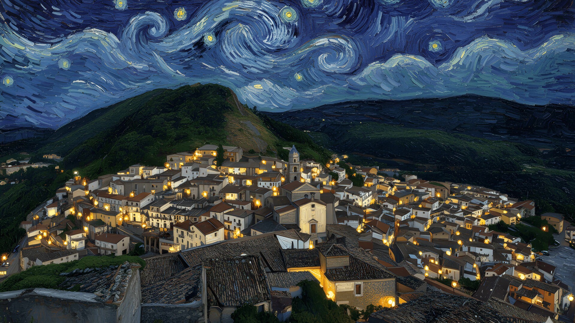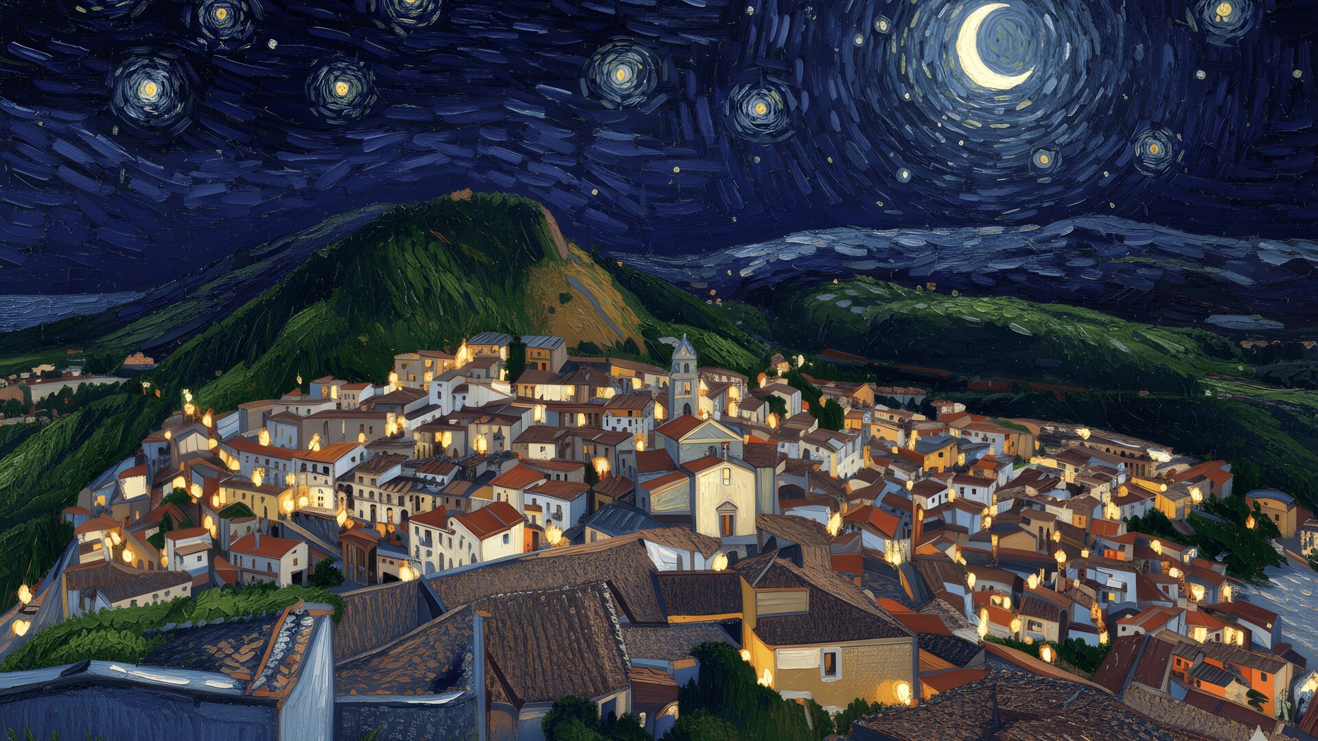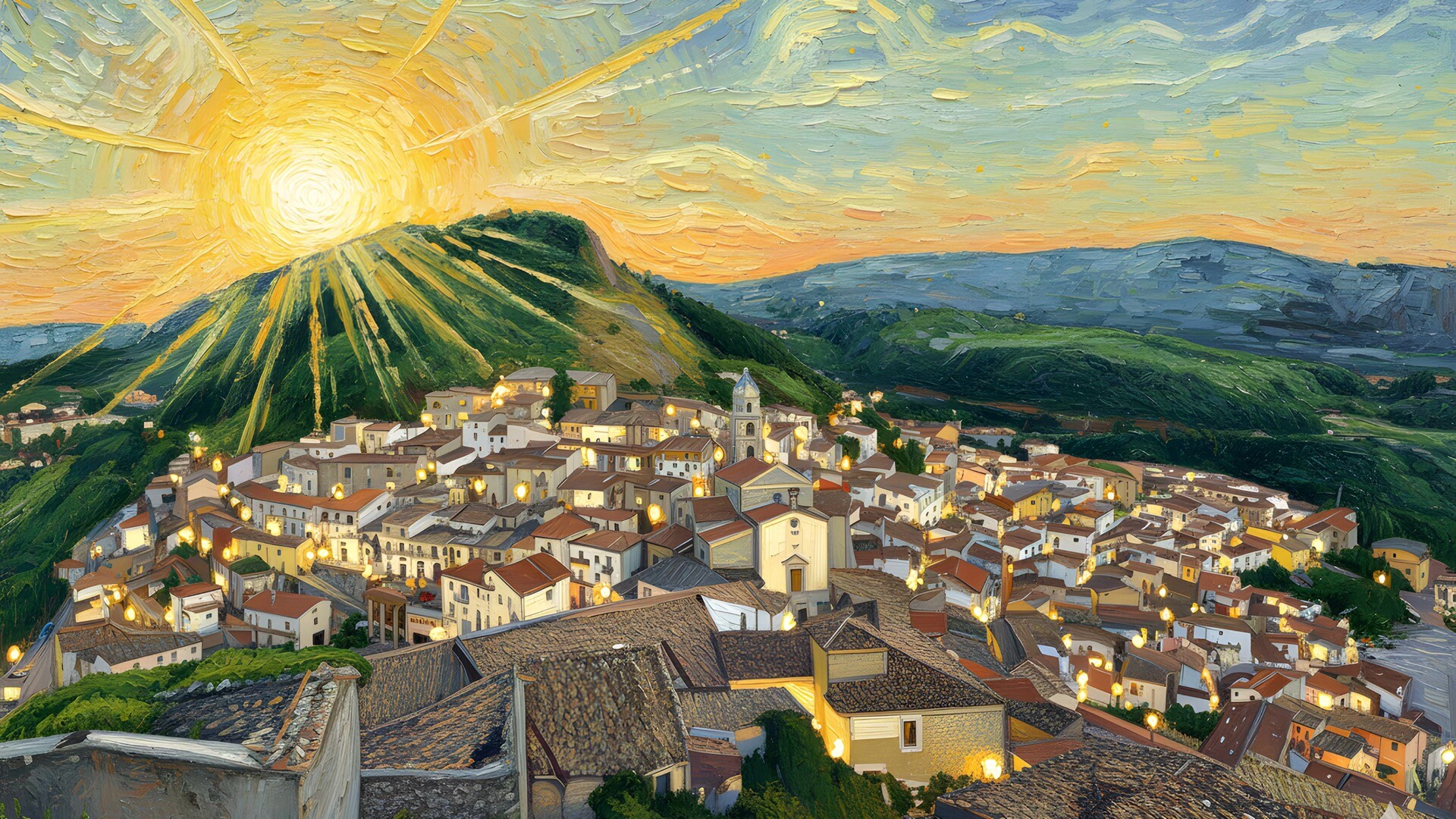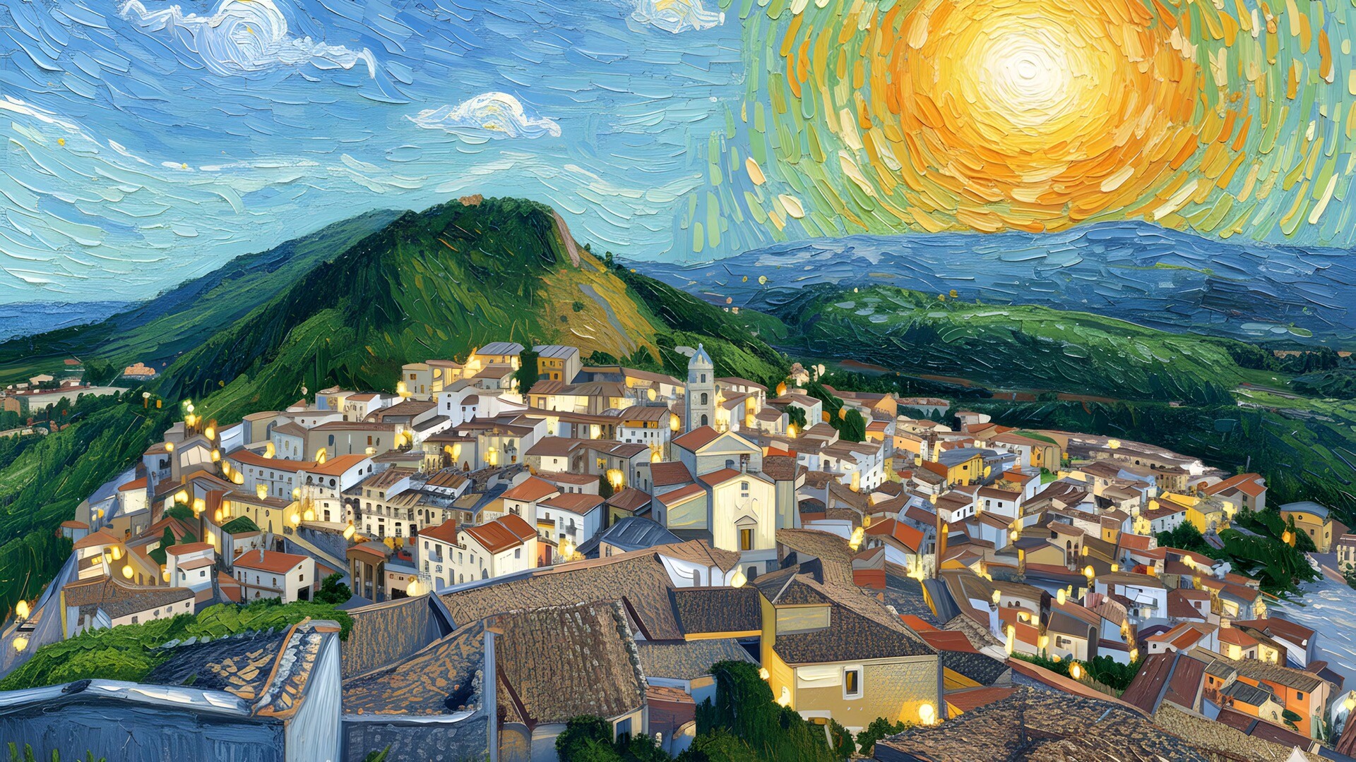 圣費萊小鎮油畫高清壁紙